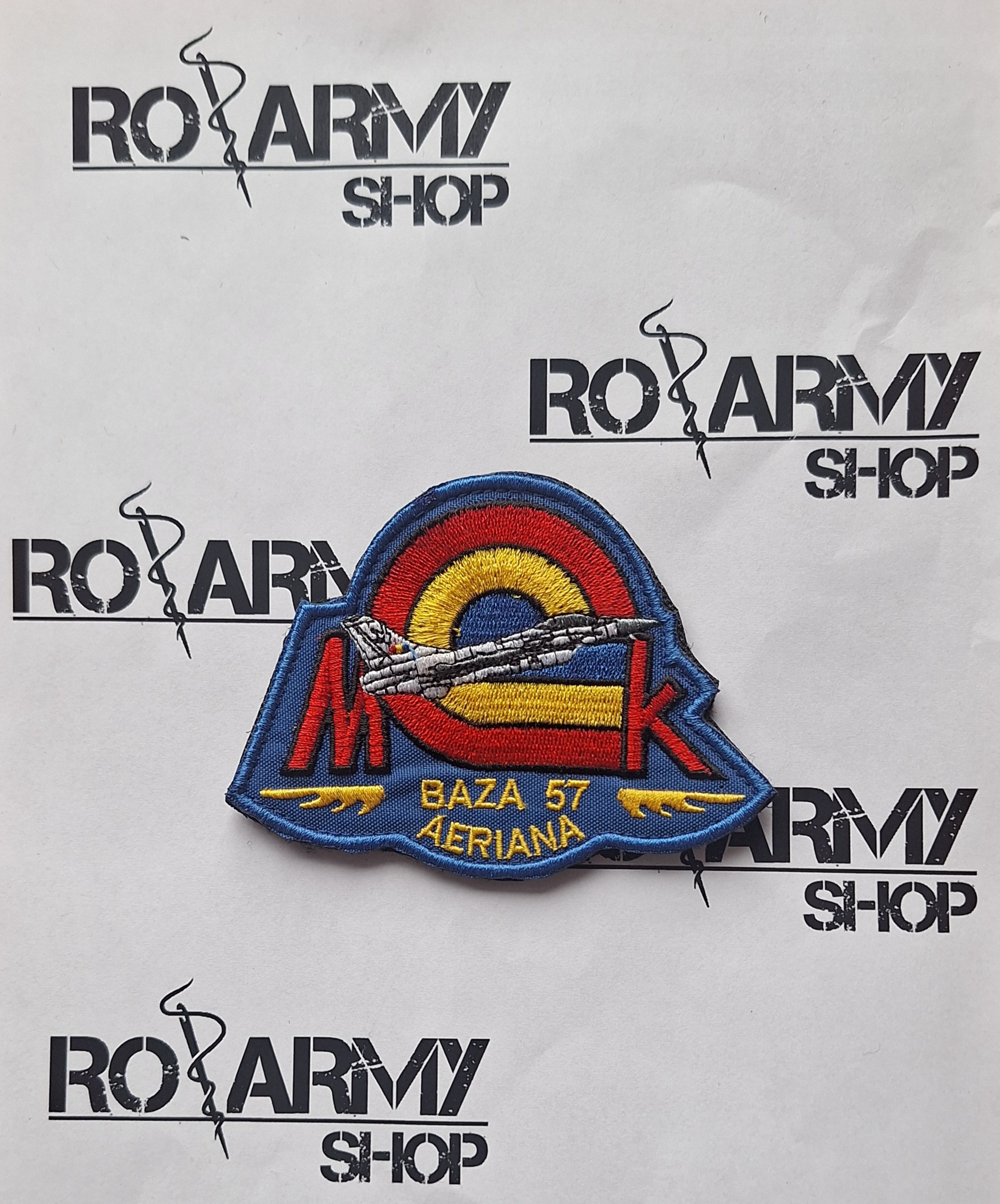 Ecuson brodat Baza 57 Aeriana – Mihail Kogalniceanu pentru tinuta de oras . Produsul este brodat pe material PES si are cusut pe spate velcro.
