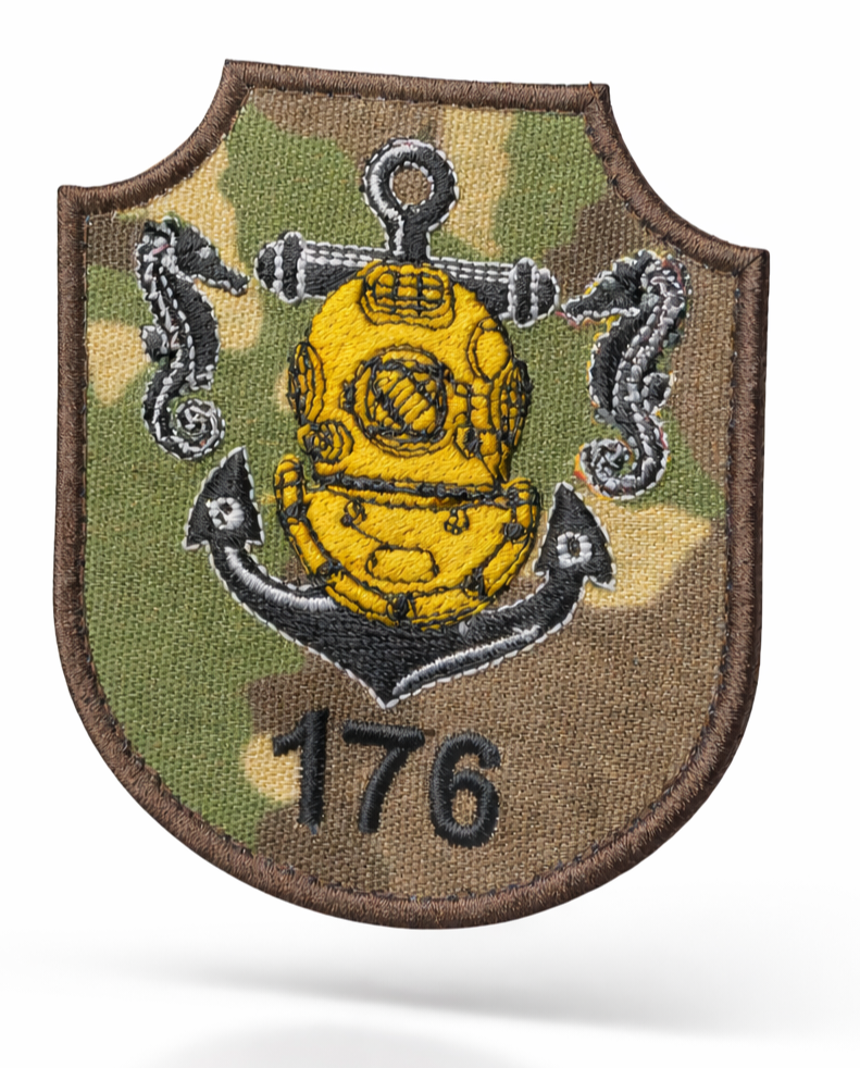 Ecuson militar brodat div 176, realizat în design tactical multicam, potrivit pentru uniformă, echipament tactic sau colecții militare.